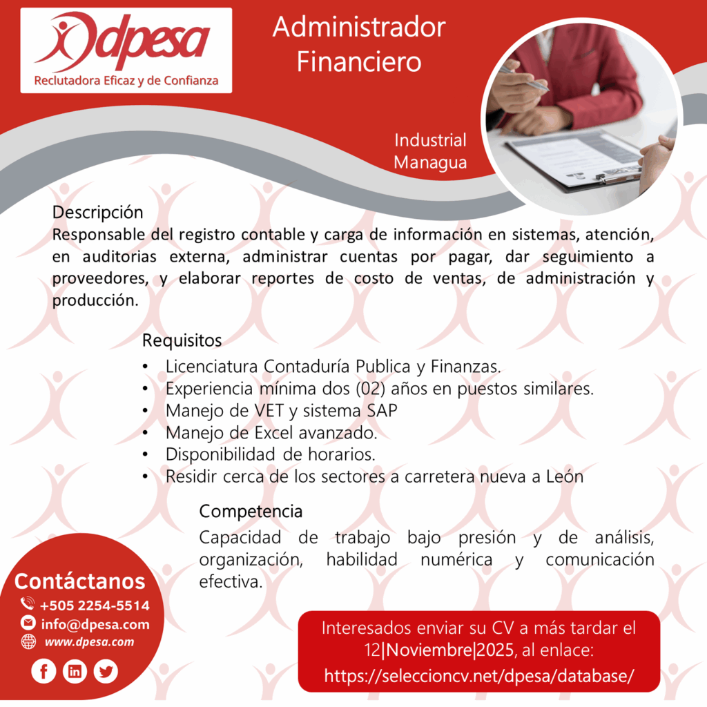 Interesados aplicar a más tardar 12|Noviembre|2025 por medio del siguiente enlace: https://seleccioncv.net/dpesa/database/