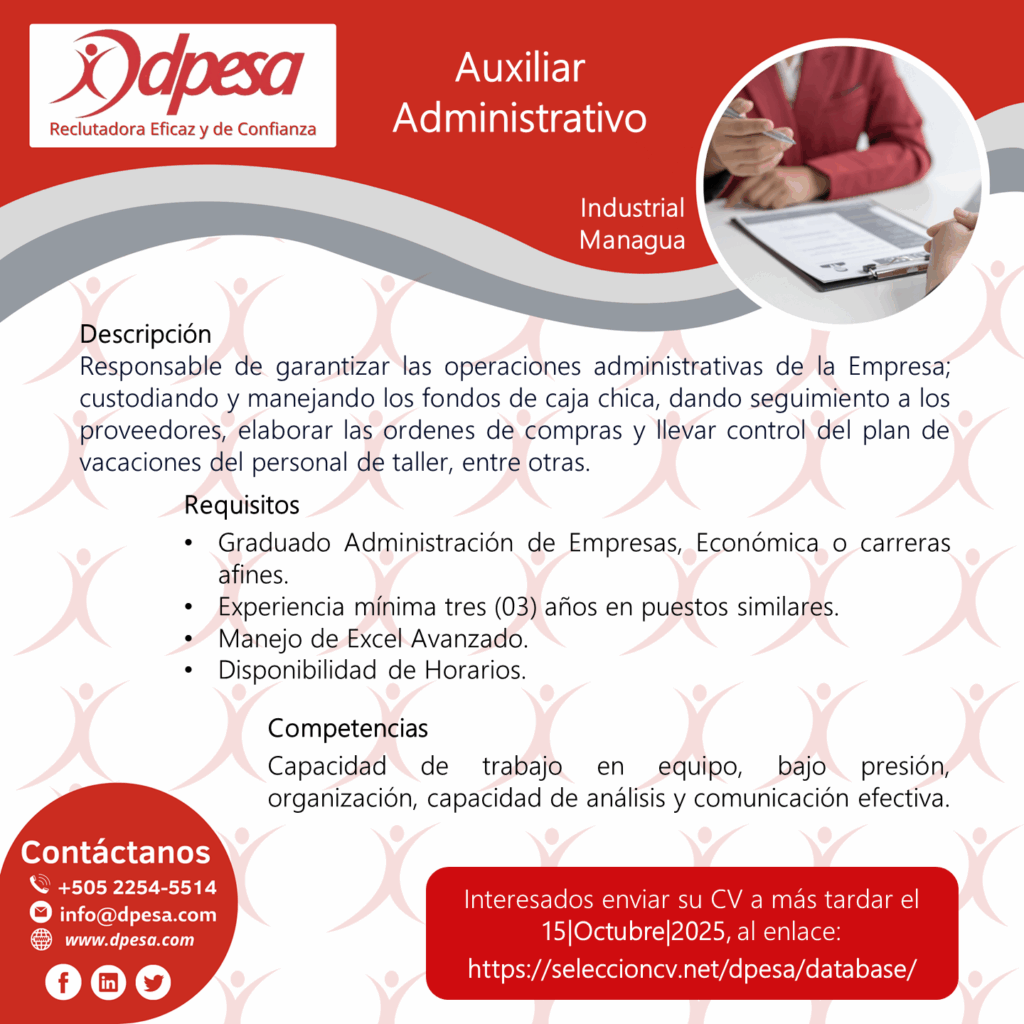 Interesados aplicar a más tardar 15|Octubre|2025 por medio del siguiente enlace: https://seleccioncv.net/dpesa/database/