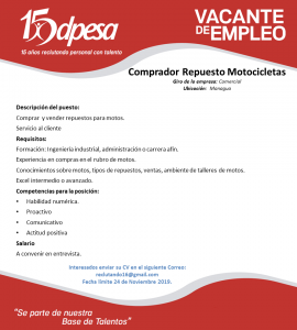 Plantilla publicación de vacantes Comprador de repuesto de motos