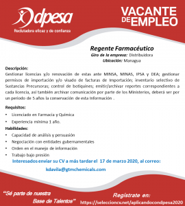 Plantilla publicación de vacantes – Regente Farmacéutico