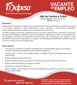 Jefe de Cartera y Cobro