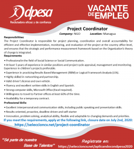 Plantilla publicación de vacante – Coordinador de Proyecto