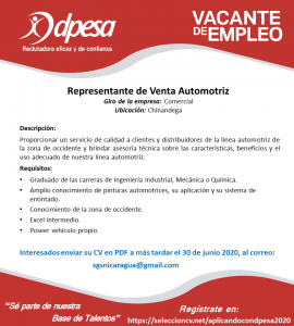 Plantilla publicación de vacantes – Representante Ventas Automotriz