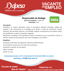 Plantilla publicación de vacantes – Responsable de Bodega León