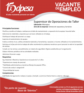 Plantilla publicación de vacantes Supervisor de Operaciones de Taller