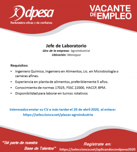 Plantilla publicación de vacantes Jefe de Laboratorio