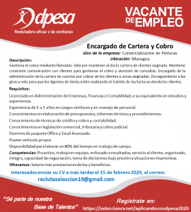 Plantilla publicación de vacantes – Encargado de Cartera y Cobro